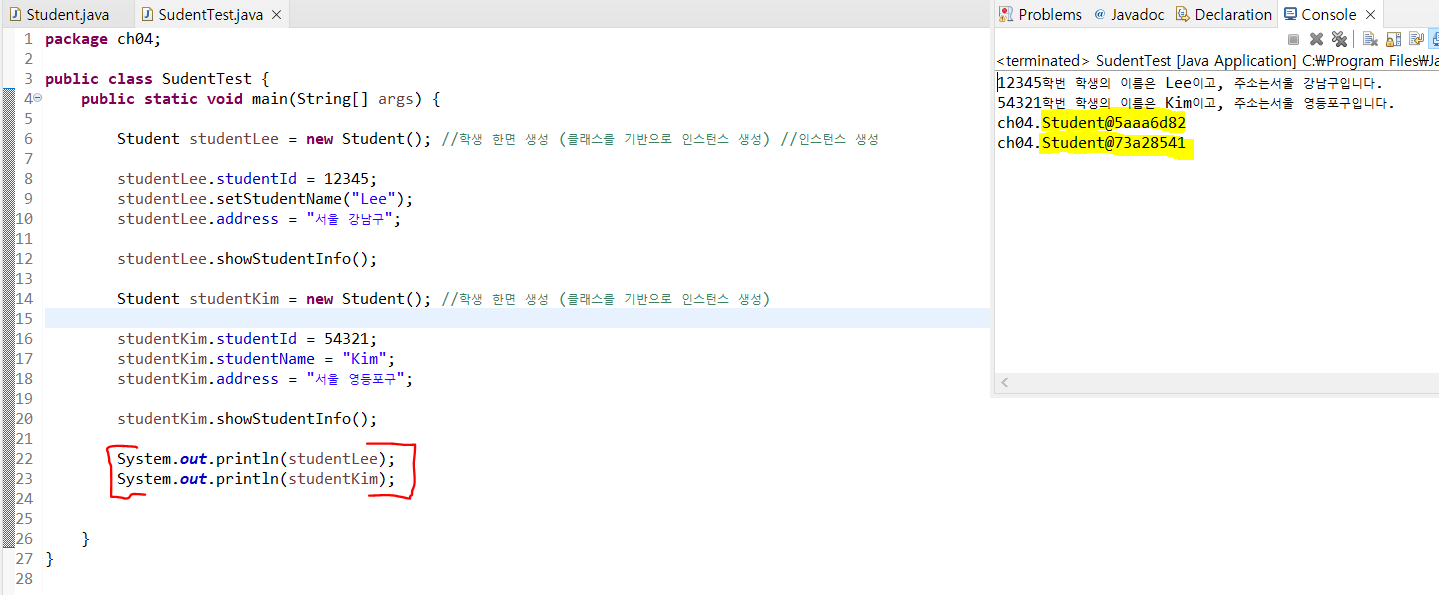 학생정보 객체