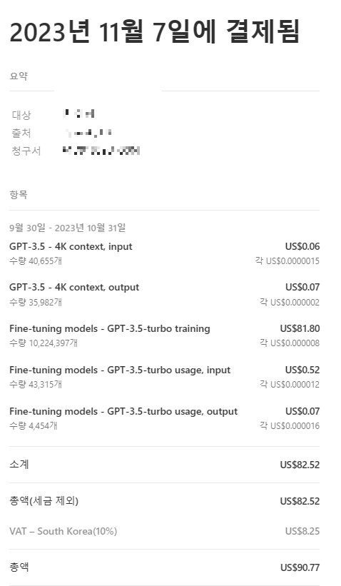 그리고 무엇보다 여러분 그거 아시나요... GPT Fine-tuning에는 생각보다 많은 비용이 들어갑니다..