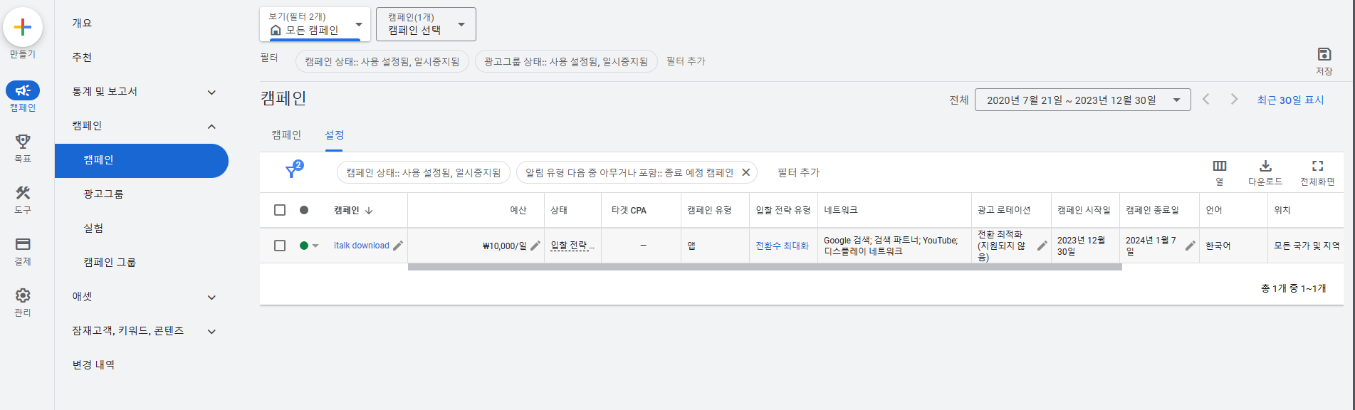 4일간 광고를 진행했다. (생각보다 다운로드 수가 나오지 않아 계획보다 일찍 종료했다.)