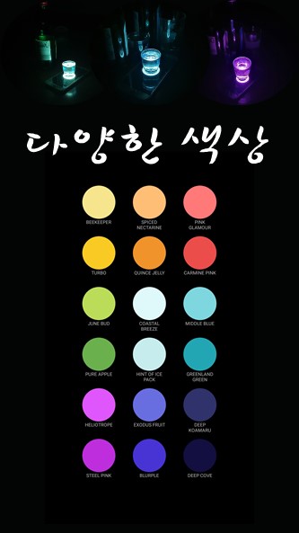 앱 내부에서는 간단하게 소주, 진로, 색상 중 선택할 수 있도록 만들었고, 색상은 18가지로 구성했다.
