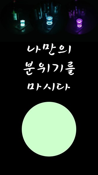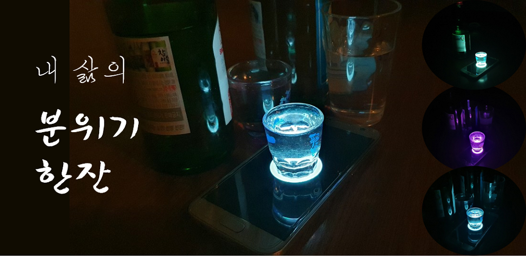 예전 술자리에서 한 친구가 스마트폰의 후레쉬 위에 소주병을 올려놓았는데 소주병이 영롱하게 빛이 났었던 기억에서 아이디어가 나왔다. 아예 스마트폰 화면에서 특정 부분만 불빛이 나오면 어떨까? 생각이 들었고 3시간만에 뚝딱 만들어 버렸다.