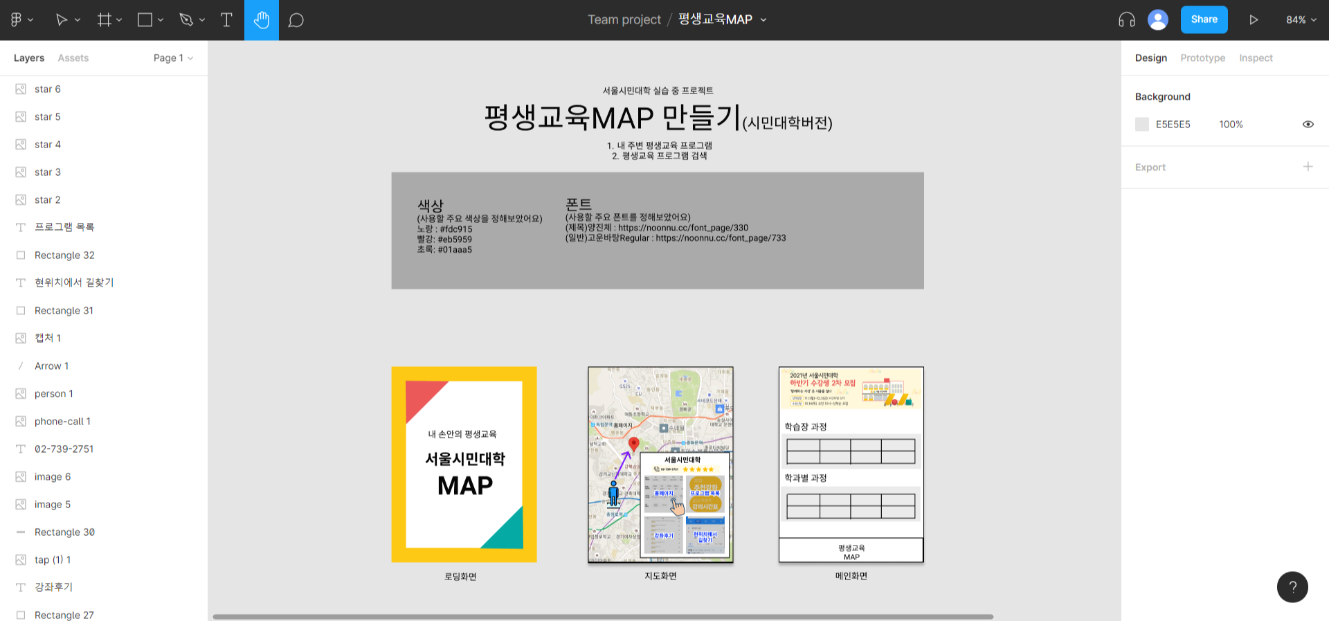 로딩화면, 메인화면, 지도화면을 구상했다.