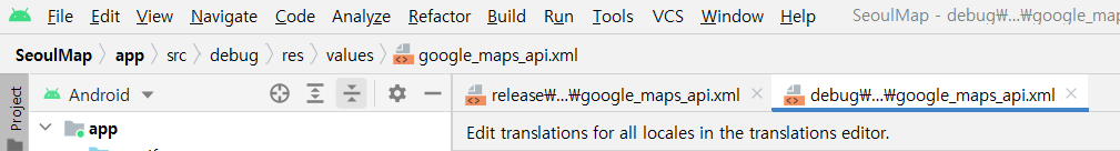 알고보니, google_maps_api.xml이 debug, release용이 따로 있었다.